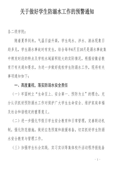 关于做好学生防溺水工作的预警通知