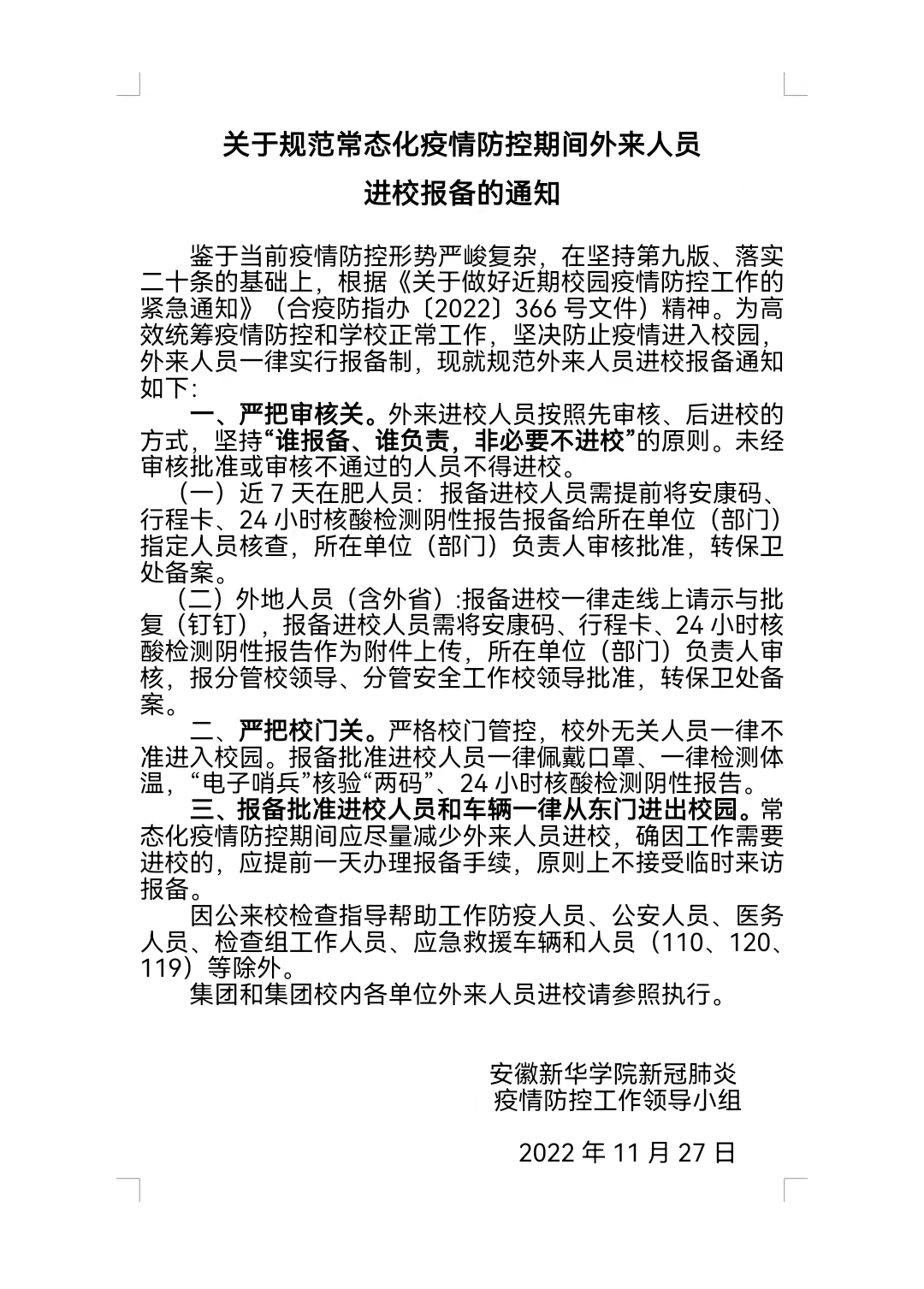 关于规范常态化疫情防控期间外来人员进校报备的通知