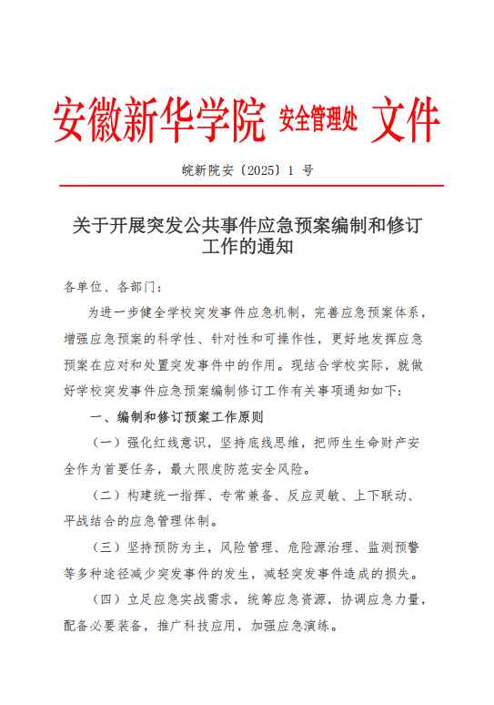 关于开展突发公共事件应急预案编制和修订工作的通知