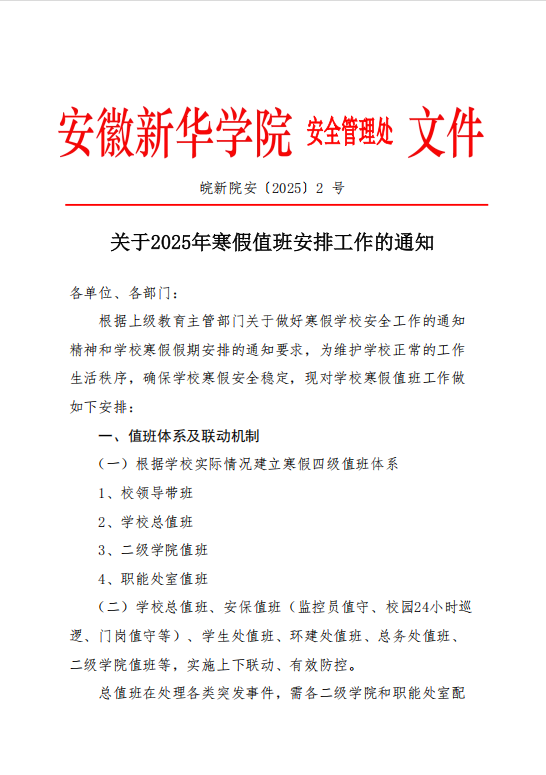 关于2025年寒假值班安排工作的通知