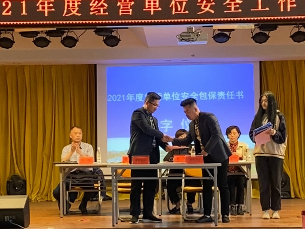贺行佳与经营单位代表签订了《pp电子官方网站2021年度经营安全管理包保责任书》。