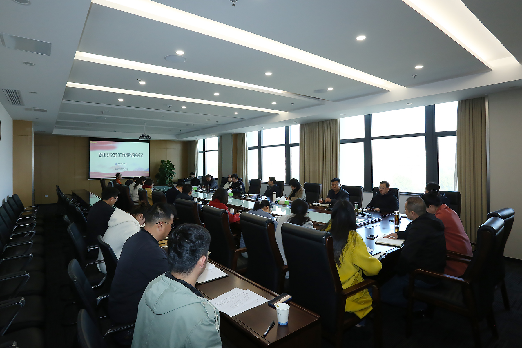本网讯(通讯员:张炎 摄影:翟漱文)为深入学习贯彻习近平总书记关于意识形态工作的重要指示和十九届六中全会精神,进一步加强pp电子意识形态工作,回顾总结今年意识形态工作开展情况,全面部署明年工作。11月30日,pp电子组织召开2021年度意识形态工作专题会议。省督导专员、校党委书记邸建伟,校长助理盛晓青、邵玲,各二级学院行政副院长以及各职能处室负责人参加,会议由保卫处副处长仇陶主持。