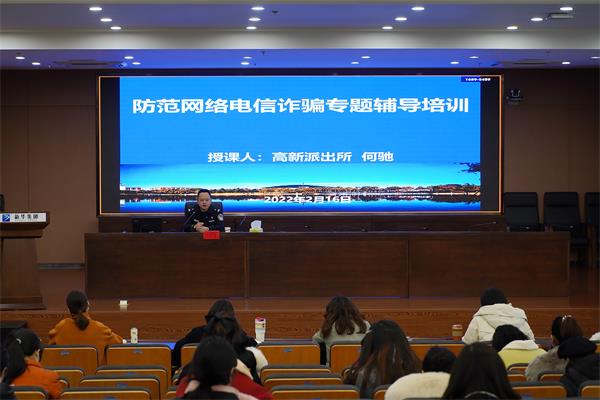 本网讯(通讯员:张炎 摄影:翟漱文)为进一步提高辅导员防电诈宣传教育能力,2月16日上午,保卫处、学生处联合在科研办公楼二楼多媒体室召开防范电信网络诈骗辅导员专题培训,邀请高新派出所何驰副所长为全体辅导员做辅导授课。会议由保卫处仇陶主持。