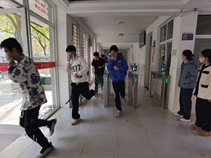 12:09分,随着急促的警报声响起,2023年pp电子官方网站消防应急疏散演练拉开了帷幕。26号学生公寓楼约700余名学生每人拿着湿毛巾捂住口鼻,在疏散引导员的指挥下,紧张有序的向宿舍楼外疏散,3分钟内宿舍楼所有人员全部疏散到安全集结点。