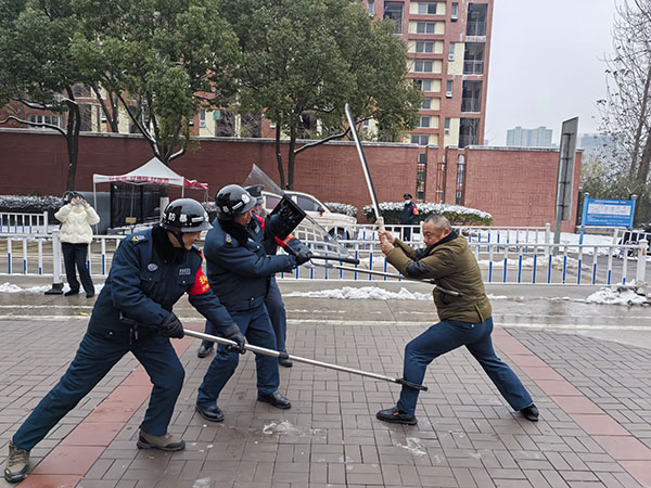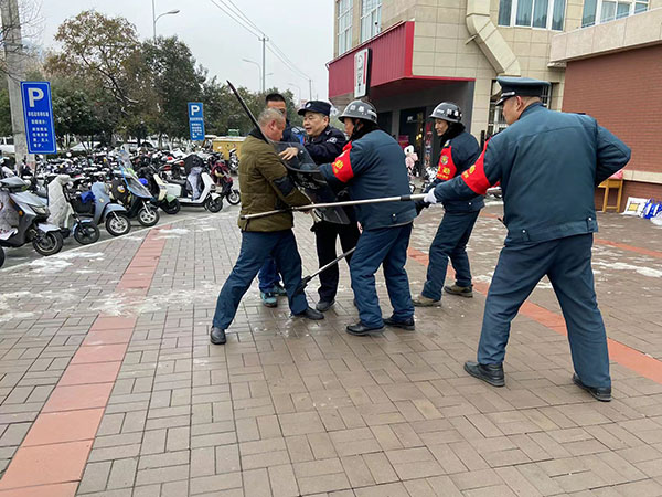 本网讯(通讯员:张大勇)12月19日上午,pp电子联合高新派出所在pp电子西门进行了反恐演习。