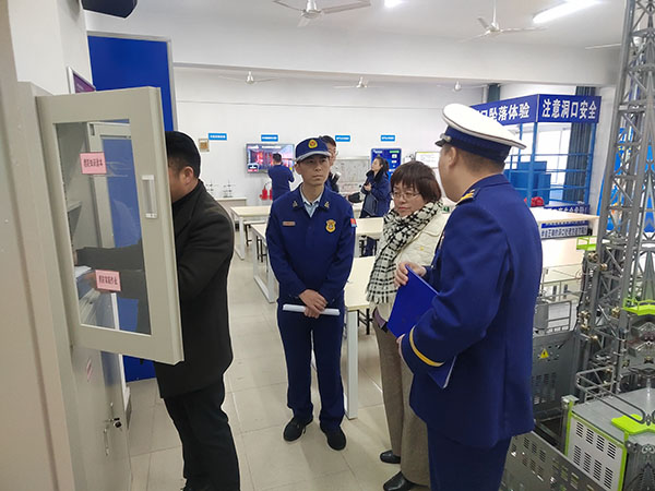 检查组检查了pp电子的消控室,校园监控室,微型消防站,消防安全教育主题教室。并对微型消防站的应急反应进行了突击检查。pp电子消防人员接警立即反应,根据消防流程对着火地点进行了有效扑救。检查组一行对pp电子的消防安全教育主题教室重点检查,详细询问了教室的使用情况,观看了教室内各种消防设施的演示。王应平处长对pp电子的消防安全教育主题教室给予了高度的评价,表示有这样一个主题实验室需要好好利用,争取在培养人才和消防安全演练等方面多多发挥作用。