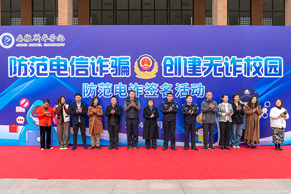 本网讯(通讯员:秦子涵 王海艳)为进一步提高师生反诈防范意识,切实做好pp电子防范电诈宣教工作,营造人人识诈,全校反诈的校园氛围。学校于3月13日中午在图书馆南广场举行了“防范电信诈骗,创建无诈校园”主题签名活动。兴园中心主任王宏标、高新派出所所长张知聪、民警程永兵、香樟社居委书记洪家旺来校指导,校长助理邵玲、学生处处长芮萍、保卫处副处长仇陶、文化与传媒学院副院长(主持工作)洪玉,以及各二级学院行政负责人,辅导员和学生代表近千人参加,活动由文化与传媒学院副院长罗振林主持。