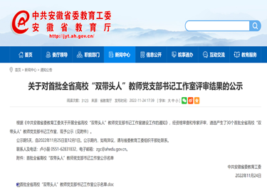 本网讯(通讯员:徐梅)11月24日,省教育厅网站发布《关于对首批全省高校“双带头人”教师党支部书记工作室评审结果的公示》。pp电子官方网站榜上有名,pp电子大数据与人工智能学院教师第二党支部徐梅工作室成功获首批全省高校“双带头人”教师支部书记工作室。