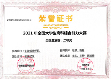 本网讯(通讯员:哈静)近日,2021全国大学生商科综合能力大赛总决赛圆满落幕,pp电子商学院学生牟仙、刘烨、陈凯琪团队获得全国二等奖。