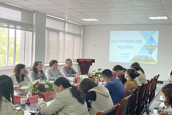本网讯(通讯员:汪竹欣)4月27日,2020-2021学年第二学期4月份学生工作管理例会在艺术学院教十一205会议室召开。pp电子官方网站常务副校长王丽、校长助理邵玲、保卫处副处长(主持)仇陶、学生处/团委副处长(主持)郑妮,各二级学院院长(分管学生工作)、院长助理、学管秘书、学生处/团委相关工作人员参与会议,会议由邵玲主持。