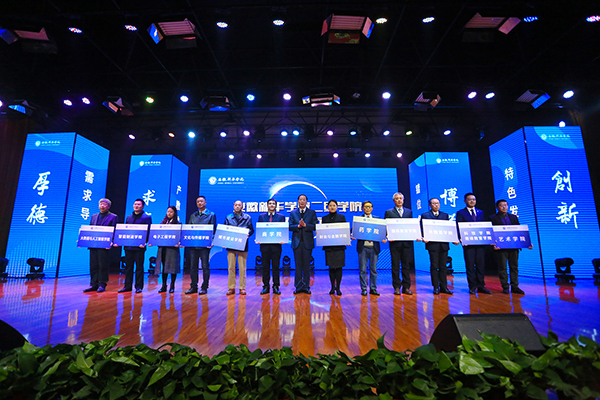 下午2时30分,发布会正式开始。常务副校长王丽宣读了二级学院全名称发布文件,大数据与人工智能学院、城市建设学院、电子工程学院、智能制造学院、文化与传媒学院、财会与金融学院、国际教育学院、商学院...