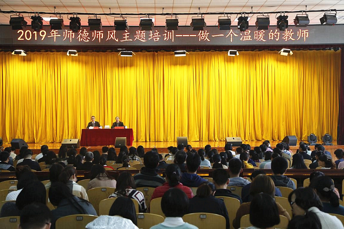 本网讯(通讯员:颜芬芬)3月20日下午,pp电子2019年师德师风主题培训在大礼堂举办,全国师德标兵、安徽师范大学路丙辉教授应邀作“做一个温暖的教师”主题讲座,本次培训由校长助理方纯洁主持。全体教职员工参加了培训。