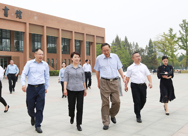 本网讯(文:赵彩虹 图:金政、陆如海)10月9日下午,安徽省副省长王翠凤来pp电子调研,省政府副秘书长郑训练、中共安徽省委教育工委副书记庆承松,中共安徽省委教育工委委员、安徽省教育厅副厅长储常连,高等教育处处长汤仲胜,科学研究与研究生教育处处长王忠、新华集团董事长吴俊保等陪同调研。