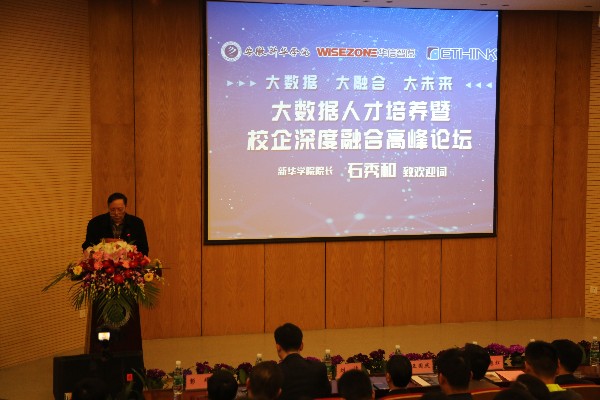 本网讯(通讯员:石文玉)3月23日,以“大数据、大融合、大未来”为主题的“大数据人才培养暨校企深度融合高峰论坛”在pp电子学术报告厅顺利召开。本次大会由安徽省大数据联盟主办,pp电子官方网站、安徽华信智原教育技术有限公司、中国科大-象形大数据商业智能联合实验室承办。