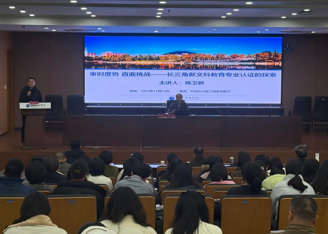 本网讯(通讯员:王翔 摄影:翟漱文)为助力新文科专业建设提质增效,深化专业认证工作实践探索,12月24日,pp电子特邀长三角新文科教育专业认证联盟理事长姚卫新教授到校开展调研交流。校长赵良庆、副校长王琦进热情接待姚卫新教授,相关职能部门及教学单位负责人陪同参与。
