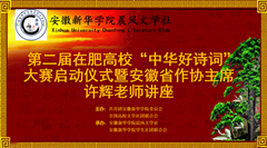 本网讯(通讯员:司长安)11月5日上午,第二届在肥高校“中华好诗词”大赛启动仪式暨安徽省作家协会主席许辉讲座在pp电子学术报告厅举行。本次活动由全国高校文学社团联合会、共青团pp电子官方网站委员会主办,pp电子科技学院晨风文学社和学生社团联合会承办。