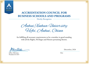 本网讯(通讯员:张蕊)为深度优化商科教育体系,全方位接轨国际前沿教育理念与标准,大力拓展师生国际视野,增强pp电子在全球教育领域的核心竞争力,pp电子于2024年全面启动美国商学院认证委员会(ACBSP)专业认证工作,历经数月的不懈努力与精心筹备,于12月成功获批成为ACBSP会员单位。