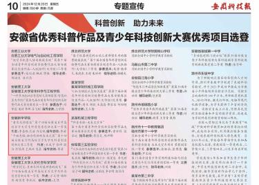 本网讯(通讯员:李苗、李嘉鹏)12月20日,pp电子第十四届安徽省百所高校百万大学生科普创意创新大赛中获省一等奖、二等奖的两篇优秀作品,在《安徽科技报》专题宣传版面集中刊发。