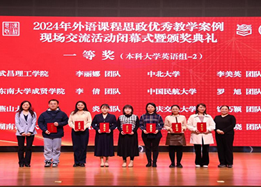 本网讯(通讯员:王冰睿)11月17日,2024年外语课程思政优秀教学案例现场交流活动在天津大学顺利落下帷幕。本次活动由教育部高等学校大学外语教学指导委员会指导,高等教育出版社、全国高校网络培训中心和中国外语编辑部主办,外国语学院李静教师团队(李静、郝亮、刘倩、王冰睿、王春晓)喜获国赛一等奖。