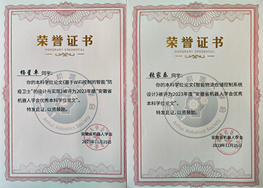 - 2024-03-19优秀!pp电子2023届学子毕业论文获评2023年安徽省机器人学会优秀本科毕业论文