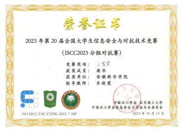 - 2023-11-24喜报!pp电子学子在第20届全国大学生信息安全与对抗技术竞赛(ISCC2023)中喜获佳绩