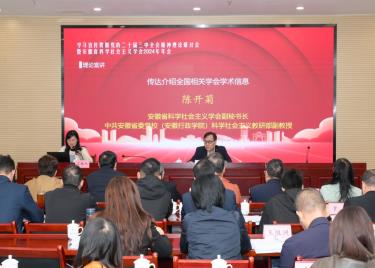 本网讯(通讯员:李静)2024年10月26日,学习贯彻党的二十届三中全会精神理论研讨会暨安徽省科学社会主义学会2024年年会在合肥召开。本次会议由安徽大学马克思主义学院、安徽省科学社会主义学会、安徽省社会科学院中国特色社会主义研究中心联合主办,安徽省社会科学院马克思主义研究所承办。来自中共安徽省委党校(安徽行政学院)、中共安徽省委讲师团、安...