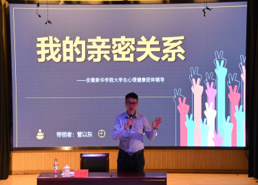 本网讯(通讯员:董文文 王健滢)为提升学生心理健康意识,促进学生心理健康的良好发展,5月10日晚,文化与传媒学院在新闻演播厅开展以“我的亲密关系”为主题的团体心理辅导活动。文化与传媒学院2020级、2021级、2022级各班级的心理委员等同学参加此次活动。本次团体心理辅导由合肥师范学院心理系校外硕士生导师管以东老师带领,2021级汉...