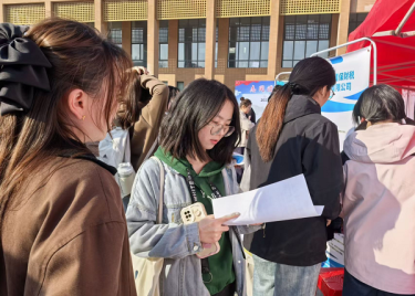 招聘会现场人流如织,气氛热烈。毕业生手持简历,就职业前景与薪资待遇等...