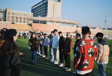 在活动中,同学们热情洋溢,散发着青春活力。翟荣兵和辅导员吴恩慧也参与到同学们的热身活动之中...