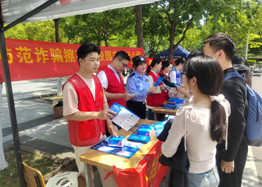 本网讯(通讯员:张大勇) 为增强师生防诈意识,营造安全校园环境,4月25日中午,pp电子联合兴园中心、香樟社居委、高新派出所,在学校二期广场开展反诈主题宣传活动。兴园中心平安部部长宣峥嵘、高新派出所民警程永兵、香樟社区和学校安管处相关人员参加了宣传活动,华园义警队全程协助,现场近千名学生参加活动。