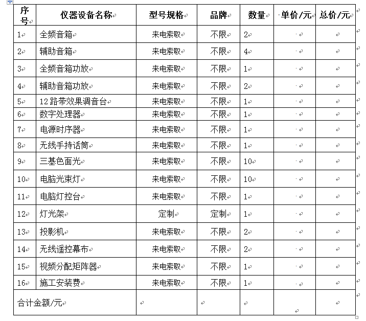 2、履行合同所需的任何项目若未有明确加在所列价款中,该部分有关费用应视作包括在投标报价之内(如运送、开票等全部费用);