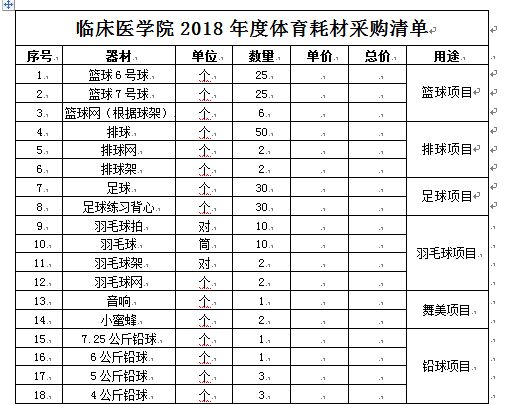 安徽医科大学临床医学院是2003年由安徽医科大学创建,是经国家教育部和安徽省人民政府批准设立的独立学院;2017年11月遵照教育部26号令要求由安徽医科大学与安徽新华集团投资有限公司合作举办,是按新机制和新模式运行的全日制本科普通高校。学院坐落于安徽省合肥市瑶海区,周边环境优美,学术氛围浓厚,校区配套设施先进,信息化建设完善。学院依托安徽医科大学雄厚的师资力量和办学资源,结合医疗健康行业的发展需求,先后建立了基础医学部、临床医学系、卫生管理学系、护理学系、药学系、公共课程部、思想政治理论课研究教学部和生物医学系;现设有临床医学、药学、公共事业管理(卫生事业管理)、护理学、生物医学工程等本科专业。现根据发展需要,对学院体育器材项目进行公开询价,欢迎全国符合条件资质的供应商积极参与。