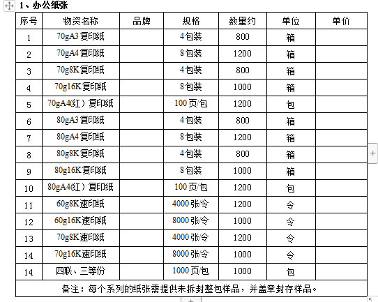 办公纸张年度集中采购招标报价公告