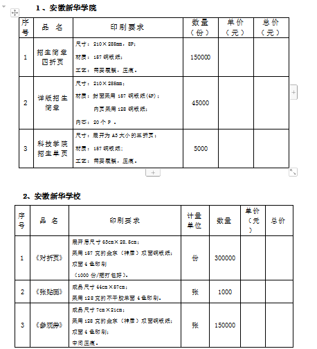 根据招生工作需要,现对:pp电子官方网站、安徽新华学校、合肥新华实验中学招生简章项目进行公开询价采购,欢迎符合资质要求并长期从事此类业务的厂家前来洽谈合作。