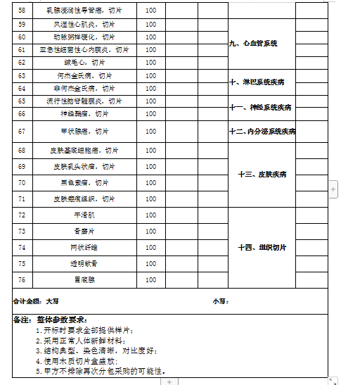 二、招标内容: 切片清单及报价表