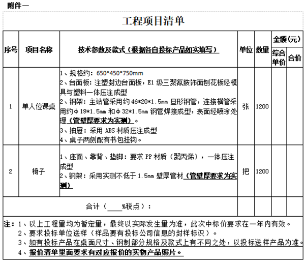 单人位课桌椅项目招标询价公告