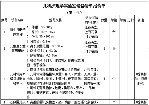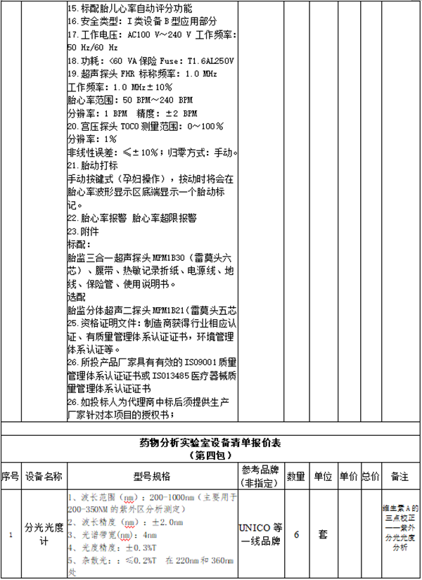 4.产品清单报价表(共4包,考虑到设备的分类不同可分包分项报价) ;