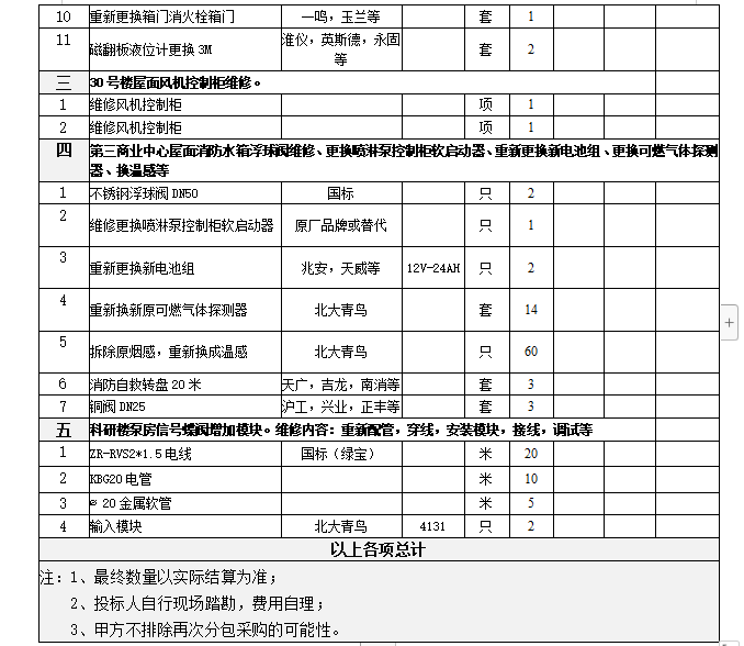 2、项目名称:消防设备维修更换项目