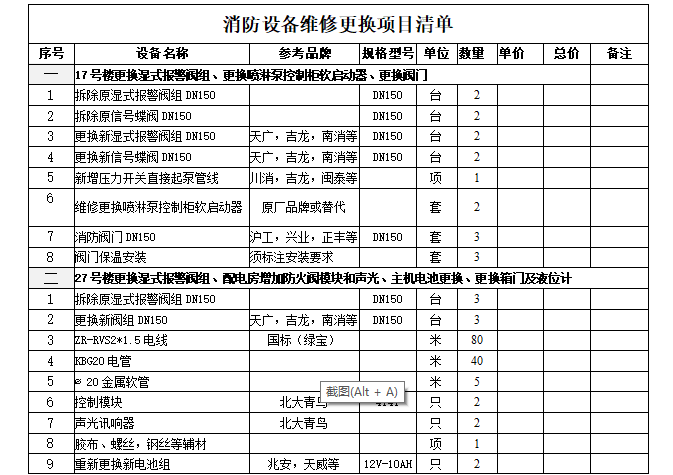 消防设备维修更换项目询价公告