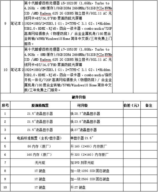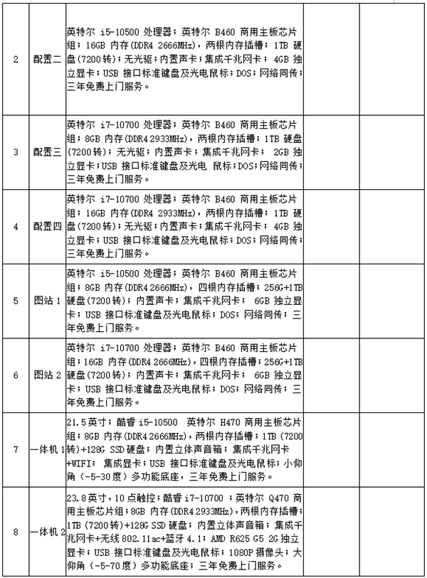 4.招标内容:电脑配置参数如下: