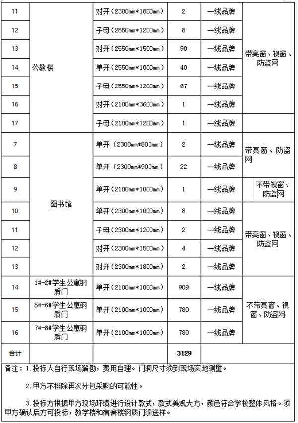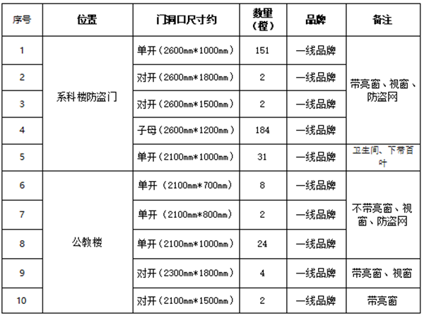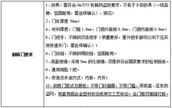 1.投标人所提供的钢质门必须符合行业标准,符合国家相关检测部门的验收规范要求;