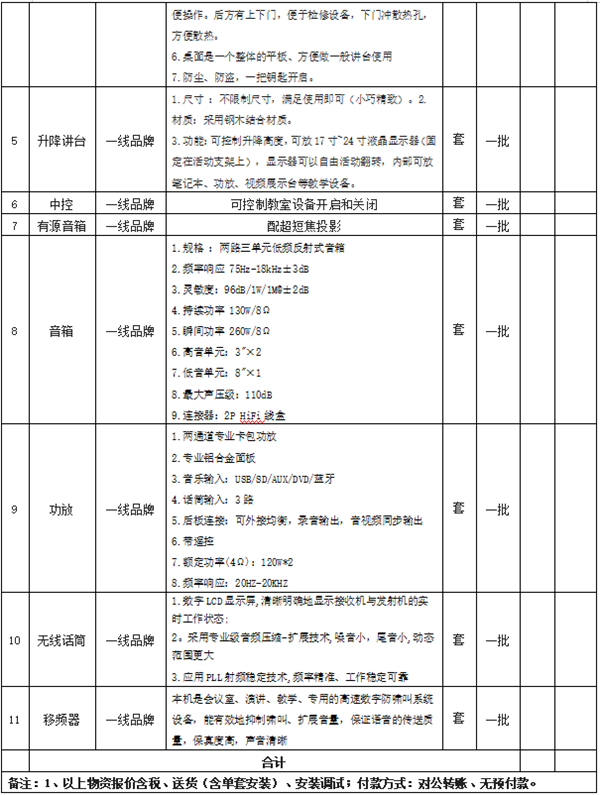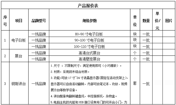 2.提供该批设备品牌、规格型号、详细参数、报价表(考虑到产品的分类不同可分项报价);