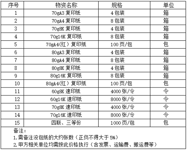 办公纸张年度集中采购招标询价公告