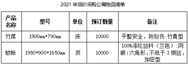 2021年学生公寓物品招标询价公告