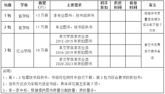 因单位建设需要,现对安徽新华集团旗下院校安徽医科大学临床医学院、南京财经大学红山学院馆藏图书需求进行公开询价采购,欢迎全国范围内符合条件的供应商报名参与。