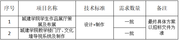 因单位建设需要,现对集团旗下院校pp电子官方网站城市建设学院学生展厅及文化墙导视系统采购项目进行招标,欢迎全国范围内符合条件的供应商报名参与。