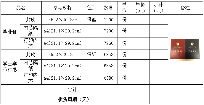 2.项目名称: 毕业证书、学位证书封面及内芯项目采购