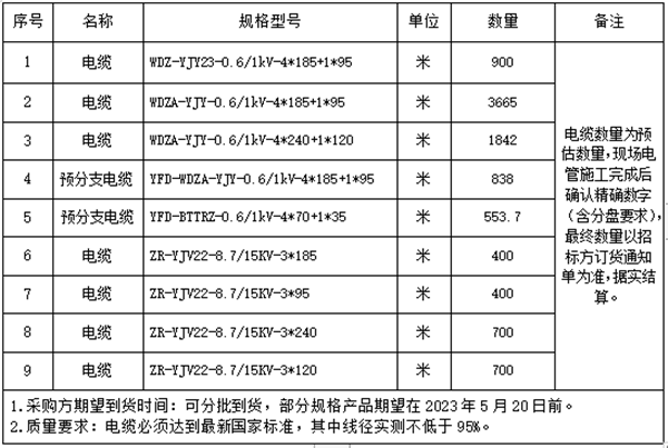 安徽医科大学临床医学院二期电缆项目采购一览表