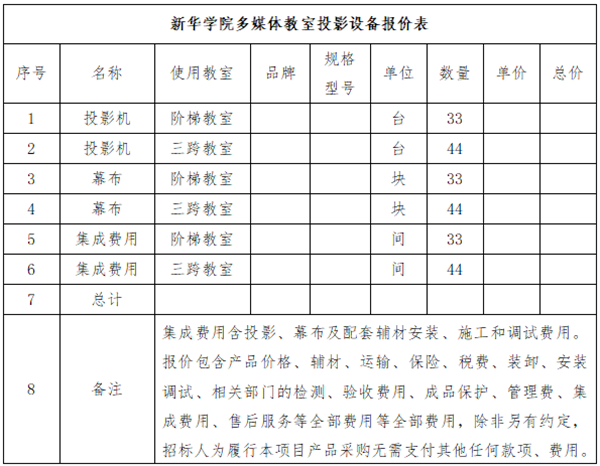 2.项目名称: 新华学院多媒体教室投影设备采购项目