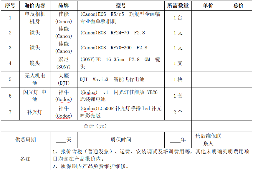 pp电子官方网站相机、镜头及补光灯等设备采购项目询价公告